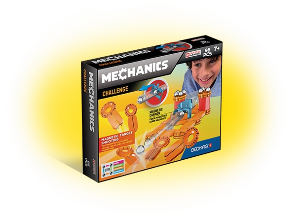 Magnetická stavebnice Geomag Mechanics Challenge obsahuje 95 dílů.